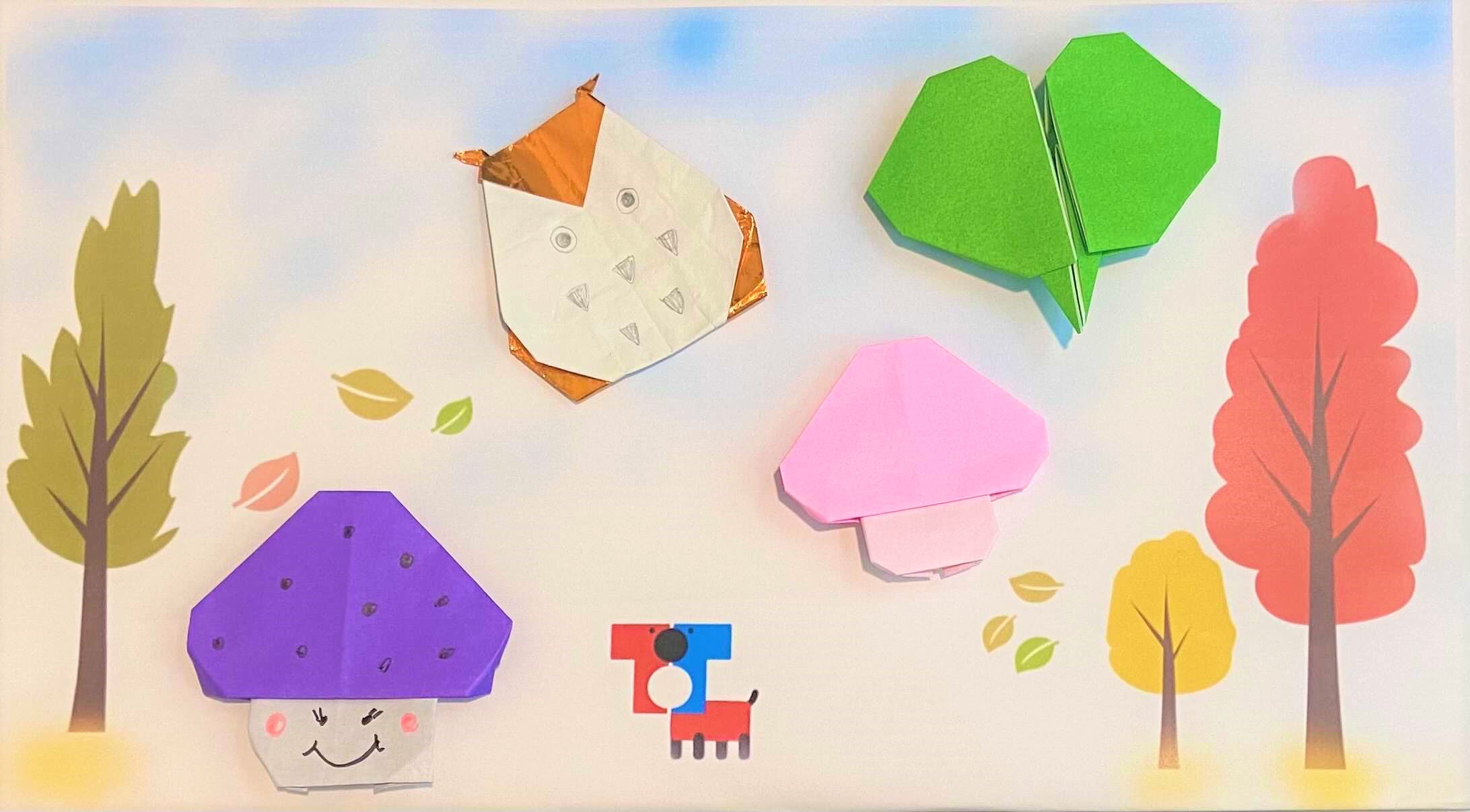 自分の好きな秋の折り紙を折って、みんなで一つの絵を創り上げよう!